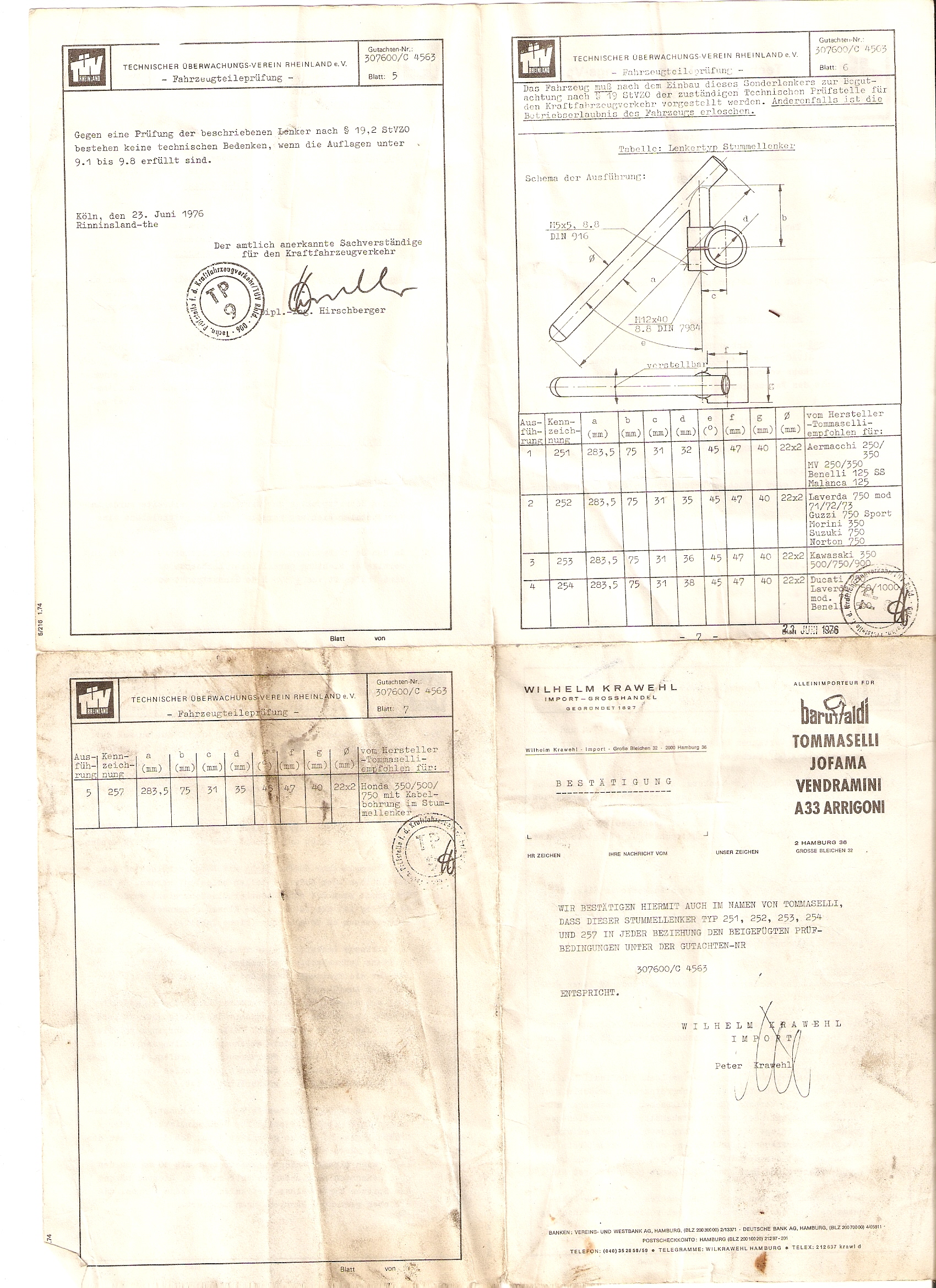 Anbei, als Anhang, das Gutachten für Tommaselli Stummellenker 251, 252, 253, 254 & 257.